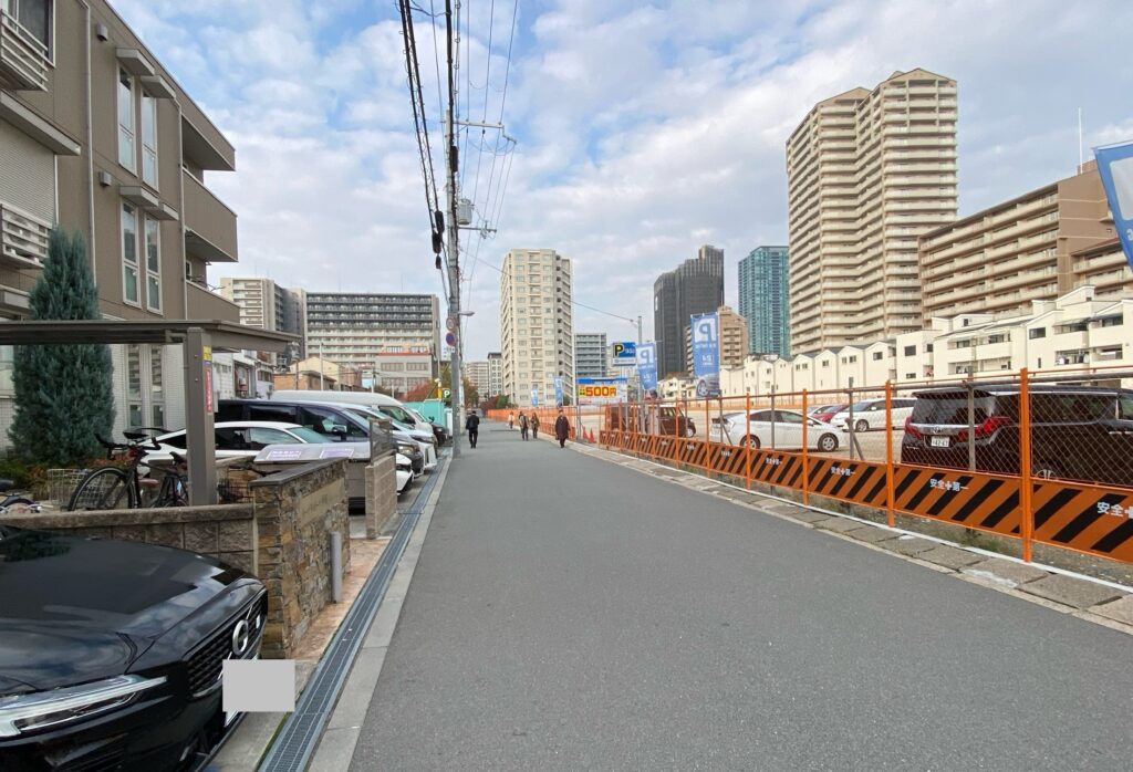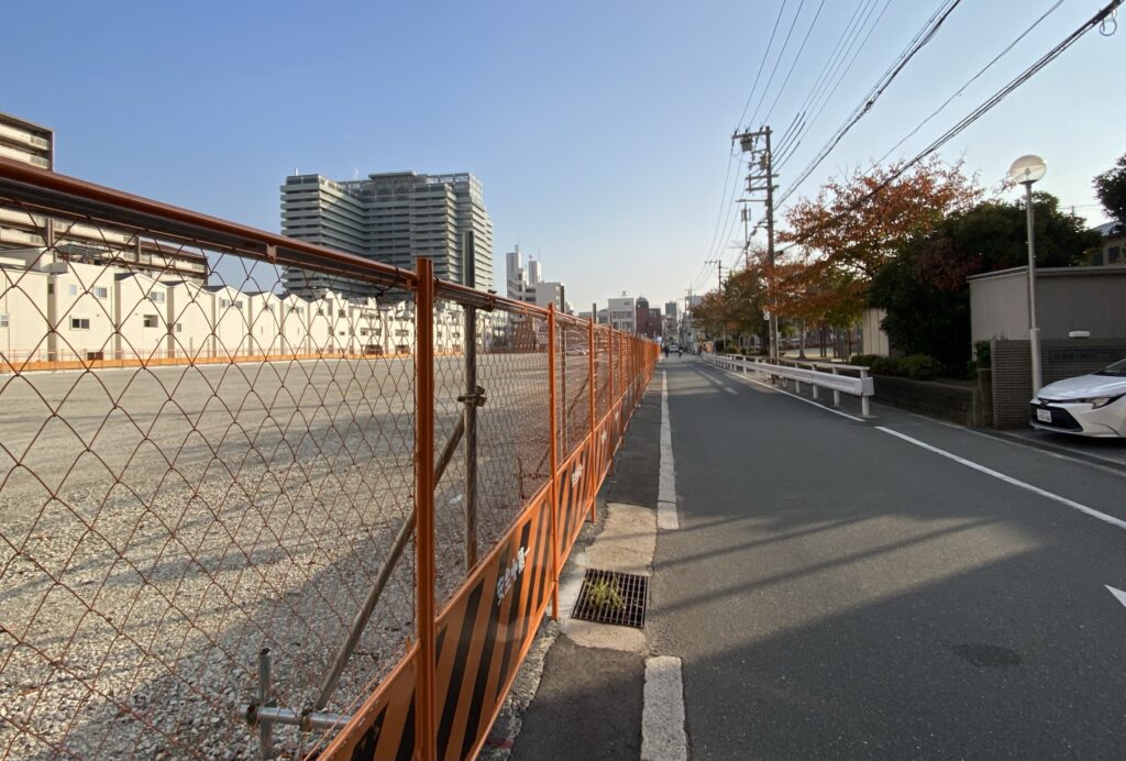 最後はその南側道路の様子です。中央線はありませんが、一方通行ではなく2車線道路です。また住居もずらっと並んでますので、そのあたりが障害となって開発するとなるとどのような用途であれ難しそうですね。