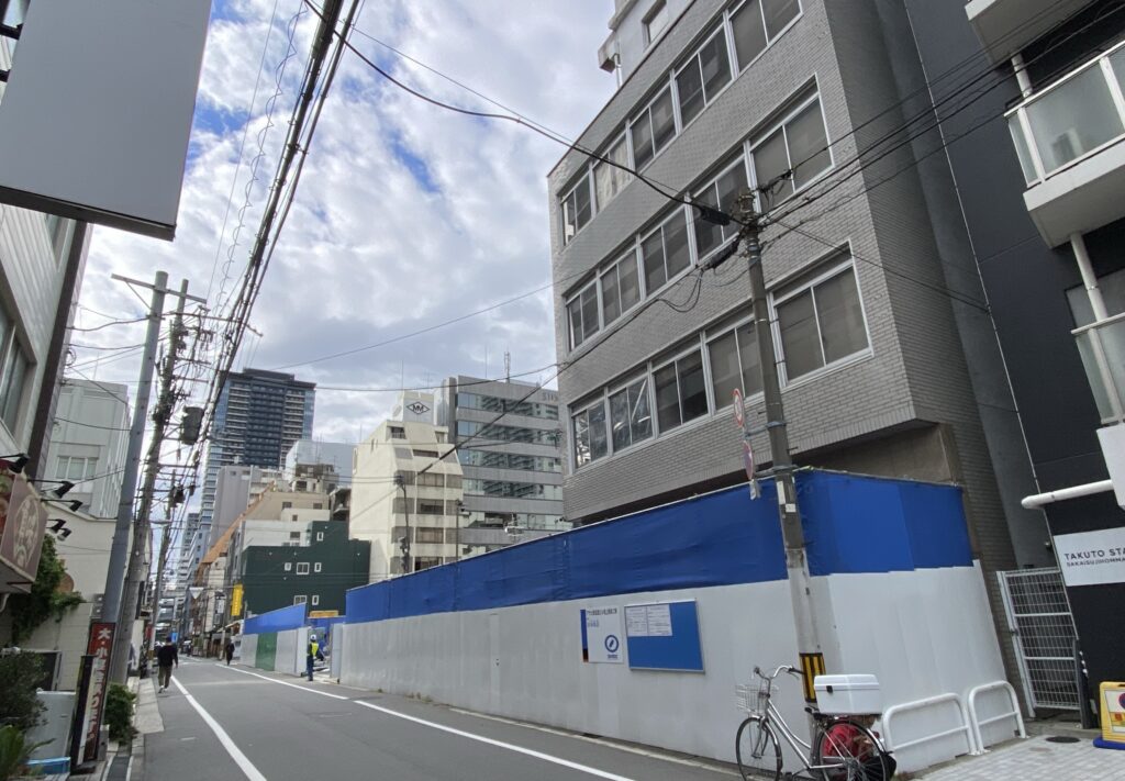 正面の4階建てのビルが解体されるアサヒ軽金属ビルです。敷地面積は330㎡ほどでしょうか?これらの敷地は当然は一体化されるでしょうから、合計される敷地面積は2,600㎡を超えてきます。