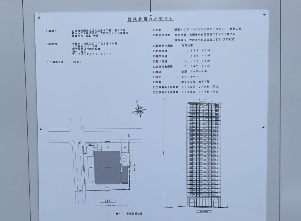(仮称)グランドメゾン玉造2丁目タワーは、積水ハウスにより大阪市中央区玉造に2030年の工事完了を予定し計画されているタワーマンションです。