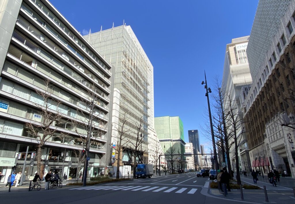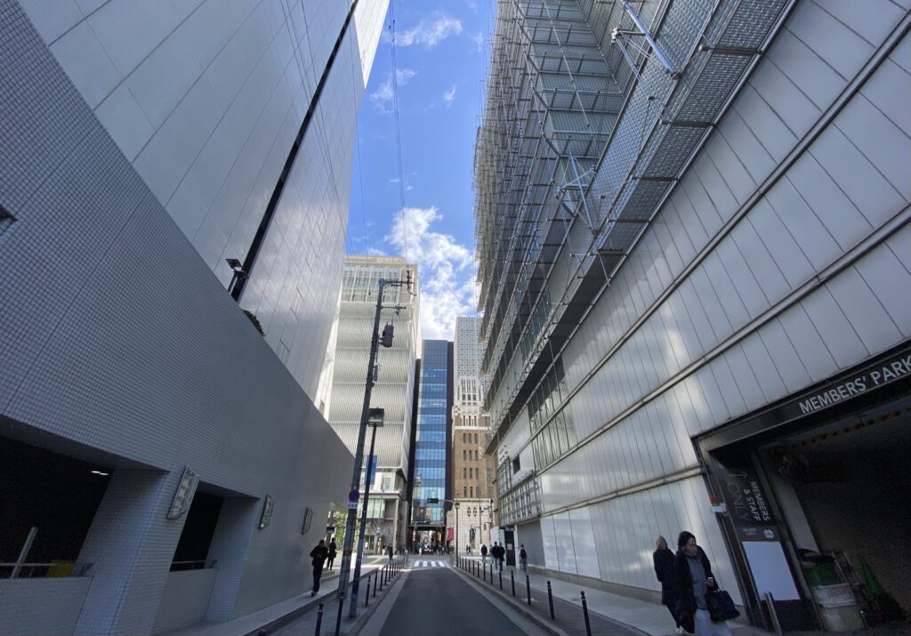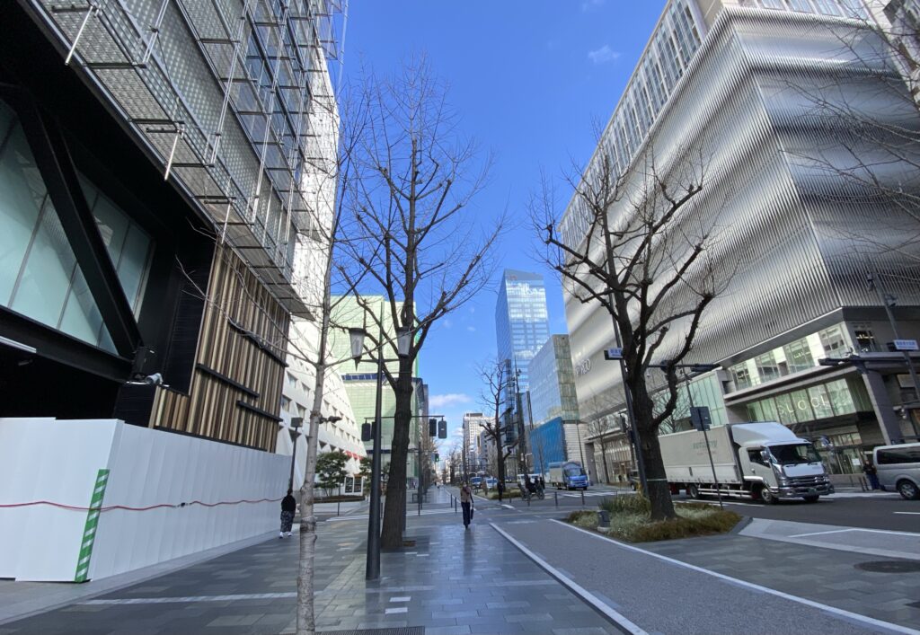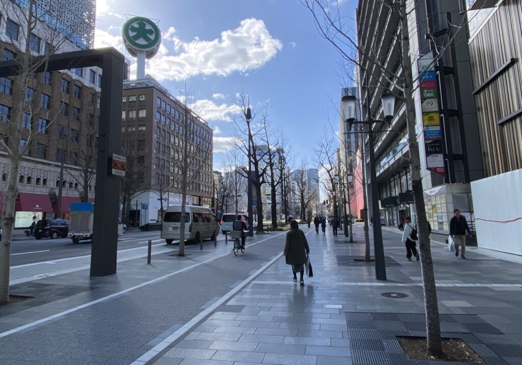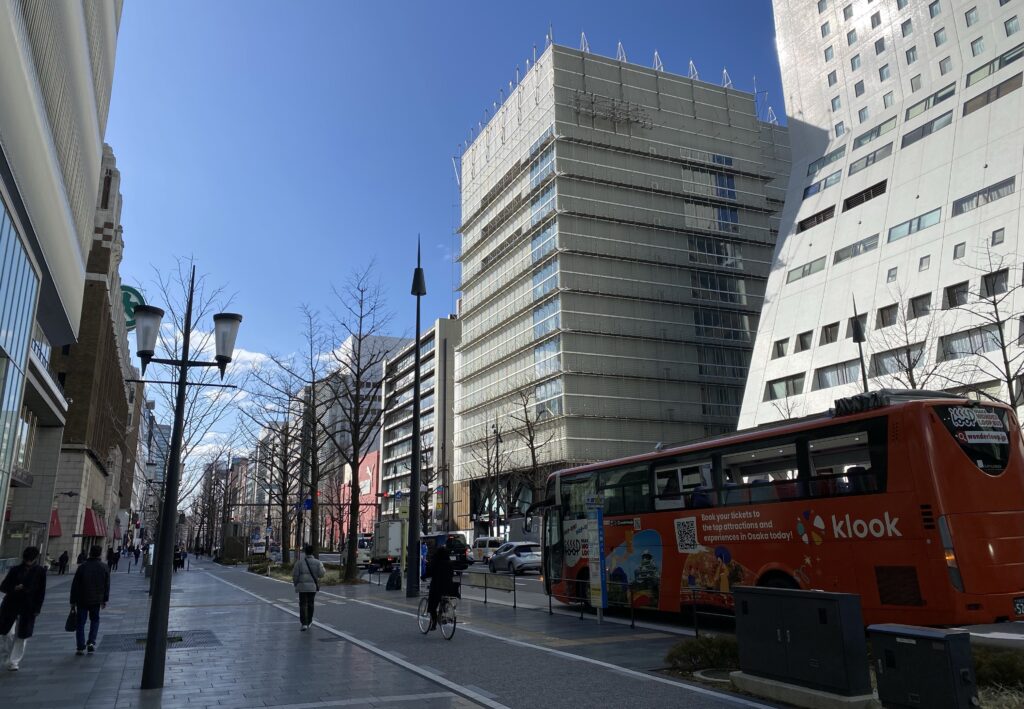 最後は難波方面の様子です。心斎橋付近は御堂筋の側道が廃止され歩道幅員が広くなり雰囲気が一変しました。心斎橋の魅力はこのような面的な回遊性の楽しみにあると思うので、OPA跡についても、このゆとりのある空間の魅力を引き継ぎ高めるモノであるならば、用途は宿泊施設やブランドの旗艦店を備えた商業施設であっても特に差異はないのかなと感じました。