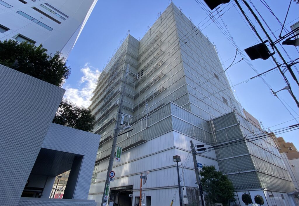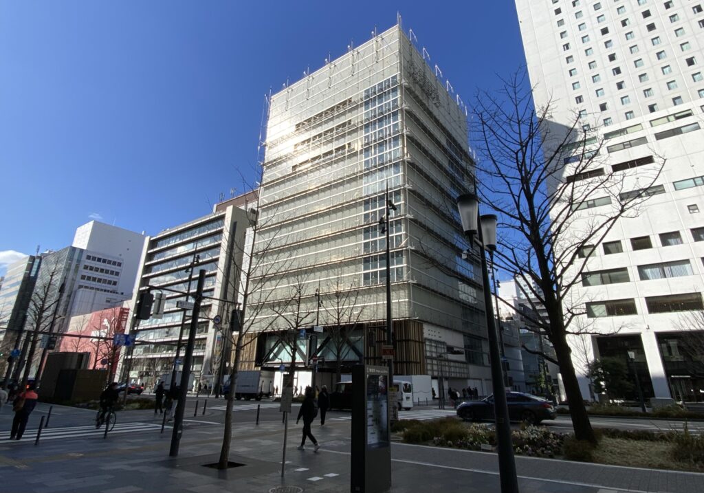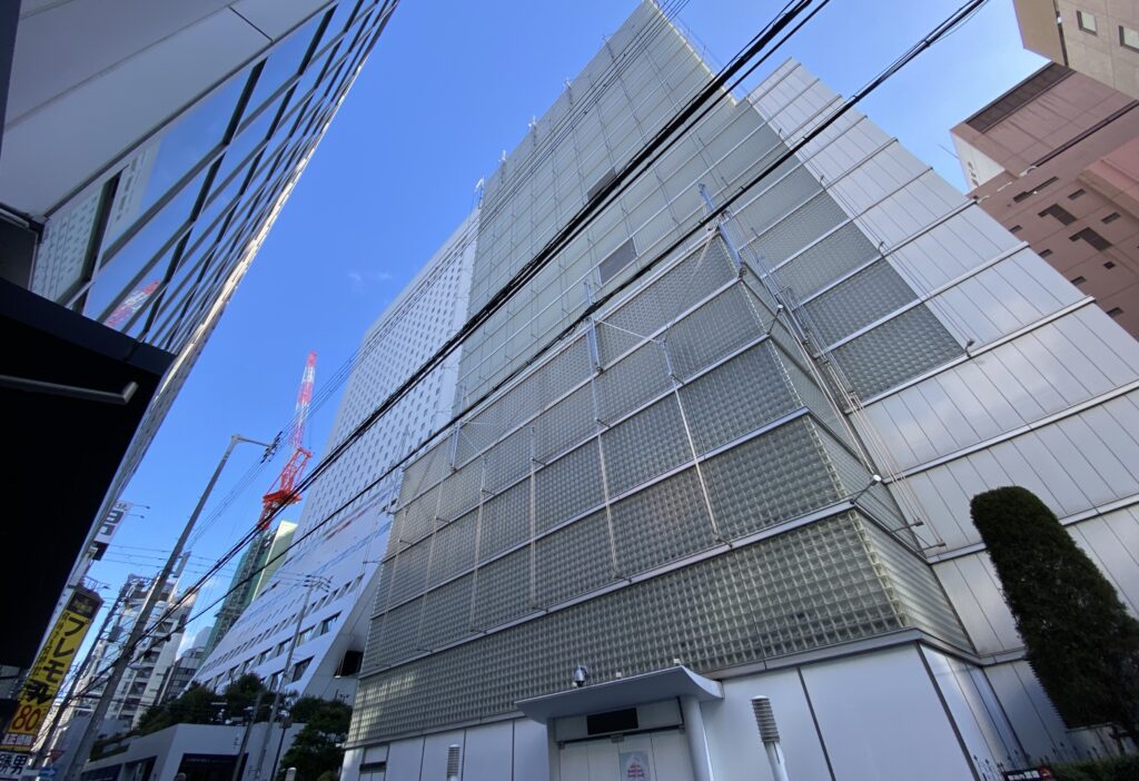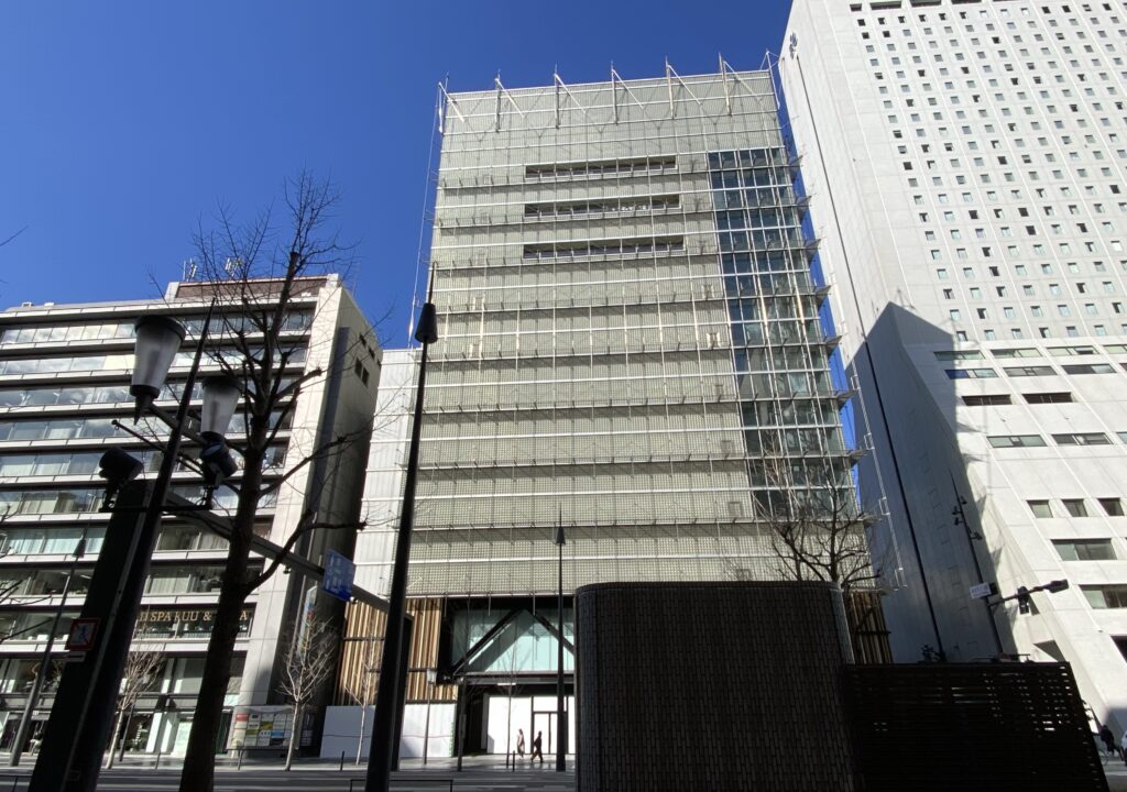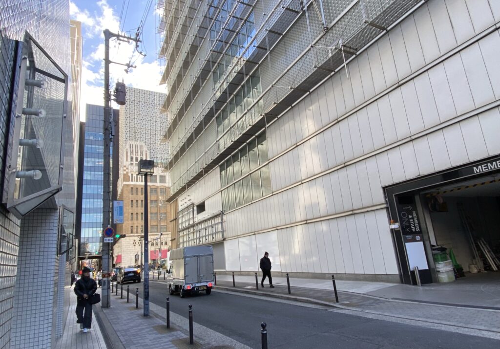 前述したクオーツ心斎橋が後方に見えています。営業を終えたビルから開業を控えるビルを望むという時代の移り変わりを実感するこの状況はあまりにも残酷ですね。これが世の常か…。