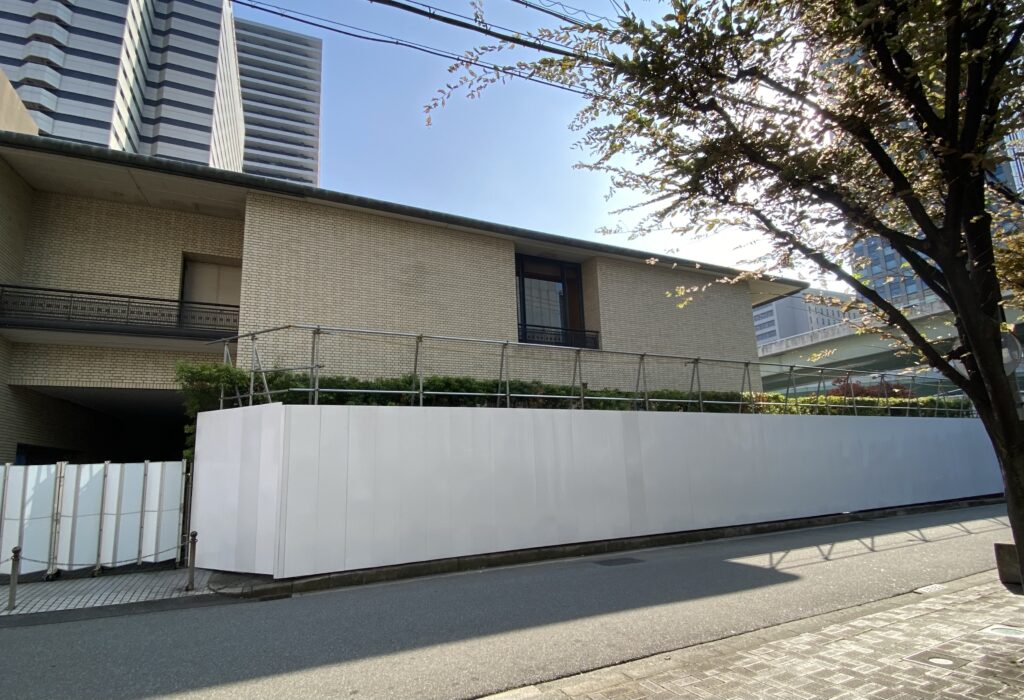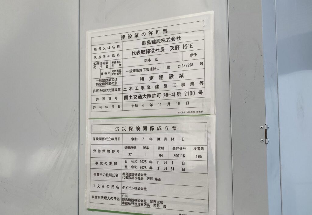 「関西クラブ」会館前に掲示されていた労災保険関係成立票によると工期は2028年3月までとなっています。ANAクラウンプラザと関西クラブ併せての工期なのか、関西クラブのみの工期なのかは不明です。